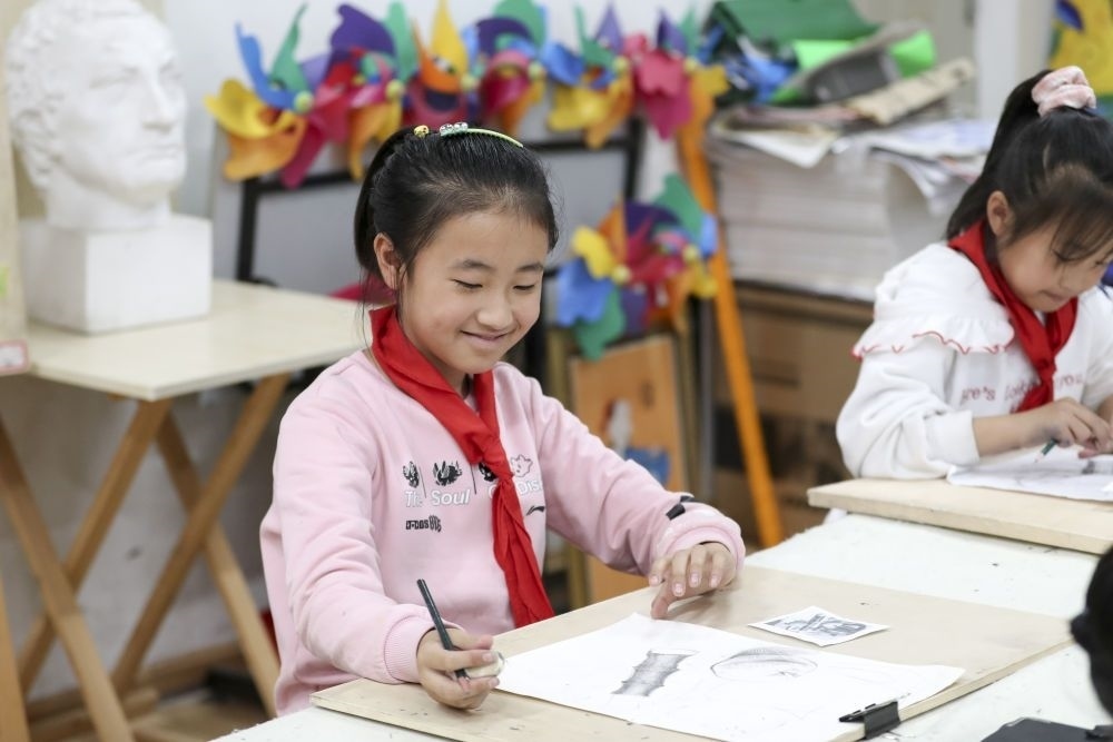 2021年10月27日,學(xué)生在黑龍江省哈爾濱市榆樹鎮(zhèn)中心校新鄉(xiāng)小學(xué)鄉(xiāng)村學(xué)校少年宮參加美術(shù)學(xué)習(xí)班。近年來,黑龍江省各地以鄉(xiāng)村小學(xué)為基礎(chǔ),大力發(fā)展鄉(xiāng)村學(xué)校少年宮,開設(shè)德育、文藝、體育、科普、手工等多種課外活動(dòng),滿足學(xué)生需求,培養(yǎng)孩子們的興趣愛好和特長(zhǎng)。