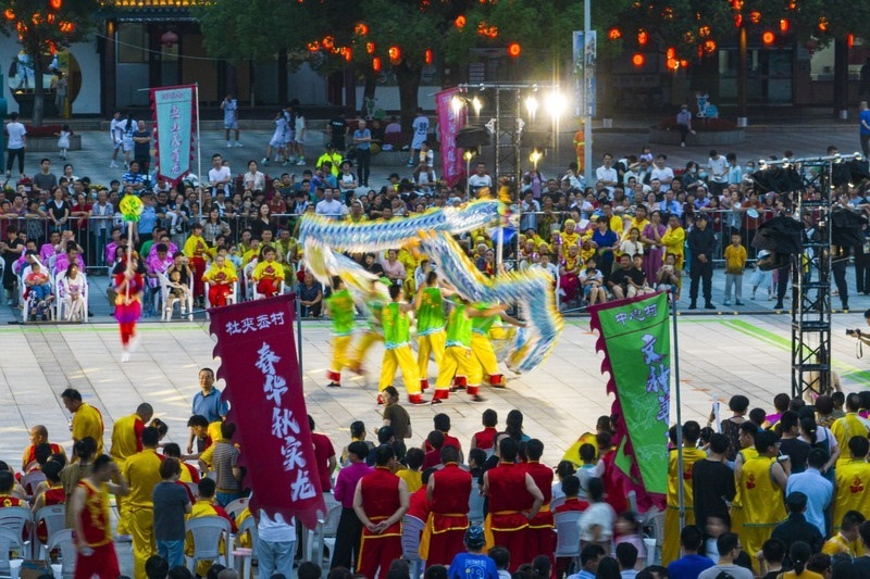 寧波市鎮(zhèn)海區(qū)九龍湖鎮(zhèn),當?shù)鼐用褡园l(fā)組成的14支舞龍隊同臺競技 省農(nóng)業(yè)農(nóng)村廳供圖