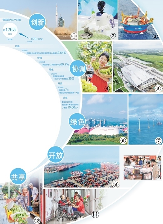 創(chuàng)新、協(xié)調(diào)、綠色、開(kāi)放、共享,在中國(guó)的發(fā)展版圖上奏響精彩樂(lè)章,激蕩出更加美好的未來(lái)。