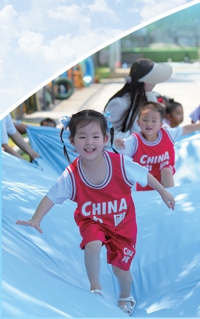 幼有所育浙江省湖州市長(zhǎng)興縣夾浦中心幼兒園,孩子們?cè)谶M(jìn)行趣味游戲。夏廷行攝(影像中國(guó))