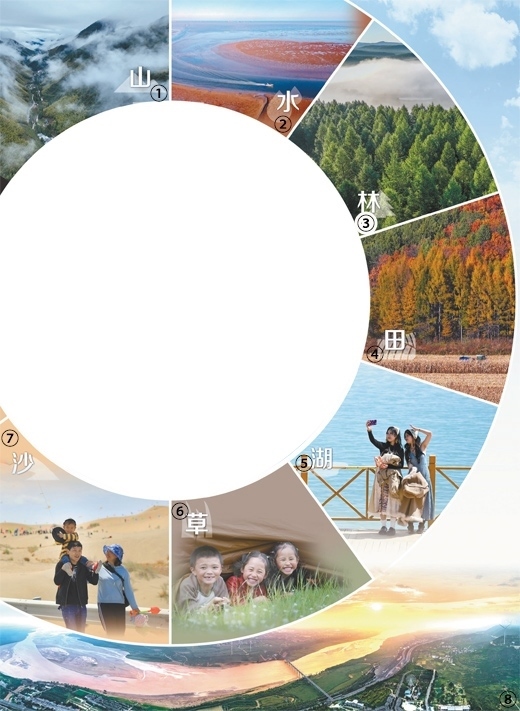 圖①:雨后的武夷山國家公園云霧繚繞。國家公園是我國自然生態(tài)系統(tǒng)中最重要、自然景觀最獨特、自然遺產(chǎn)最精華、生物多樣性最富集的部分,我國國家公園建設是生態(tài)文明建設中具有示范引領意義的工程。邱汝泉攝(新華社發(fā))圖②:山東東營市紅灘濕地旅游區(qū)生態(tài)濕地,生長在灘涂上的堿蓬等鹽生植物,如同一塊巨大的紅地毯。劉智峰攝(影像中國)圖③:河北承德市圍場滿族蒙古族自治縣塞罕壩國家森林公園。組建至今,塞罕壩機械林場營造人工林百萬畝,創(chuàng)造了荒原變林海的奇跡。劉滿倉攝(影像中國)圖④:黑龍江雞西密山市黑土地上種植的玉米。近年來,我國加強黑土地保護,守護“耕地中的大熊貓”。孫樹寶攝(影像中國)圖⑤:游客在青海湖畔拍照。當?shù)亓己玫纳鷳B(tài)環(huán)境和優(yōu)美的景色吸引了來自全國各地的大量游客。新華社記者 張 龍攝圖⑥:四川甘孜藏族自治州日通草原上,躲在帳篷里的小朋友享受假日生活。我國持續(xù)推進草原生態(tài)保護修復,穩(wěn)步提升草原生態(tài)功能。新華社記者 江宏景攝圖⑦:新疆博湖縣博斯騰湖畔的艾勒遜烏拉沙漠,游客正帶著孩子在游玩。近年來,我國推進科學化、規(guī)?;紊常攸c治理區(qū)實現(xiàn)“沙進人退”到“綠進沙退”的歷史性轉(zhuǎn)變。年 磊攝(人民視覺)圖⑧:黃河陜西潼關段景觀。近年來,我國持續(xù)推動黃河流域生態(tài)保護和高質(zhì)量發(fā)展,流域生態(tài)環(huán)境持續(xù)明顯向好,讓黃河成為造福人民的幸福河。王生暉攝(人民視覺)