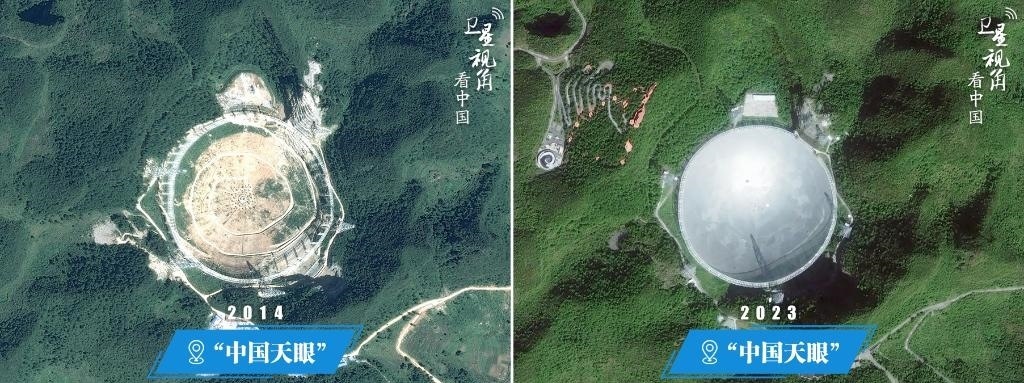 “中國(guó)天眼”全稱(chēng)500米口徑球面射電望遠(yuǎn)鏡,位于貴州省平塘縣,是我國(guó)獨(dú)立自主設(shè)計(jì)并建造的世界最大的單口徑射電望遠(yuǎn)鏡。工程于2011年3月動(dòng)工興建,2016年9月落成啟用。