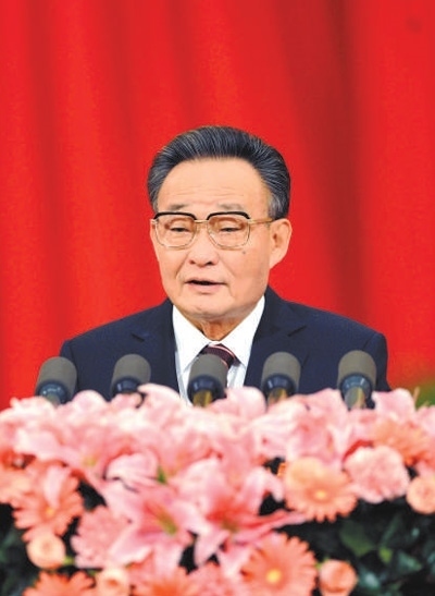 二〇一一年三月十日,十一屆全國人大四次會(huì)議在北京人民大會(huì)堂舉行第二次全體會(huì)議。吳邦國同志作全國人民代表大會(huì)常務(wù)委員會(huì)工作報(bào)告。新華社記者 謝環(huán)馳攝