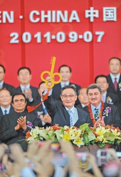 二〇一一年九月七日,吳邦國同志在福建廈門出席第十五屆中國國際投資貿(mào)易洽談會(huì)開館式。新華社記者 張國俊攝
