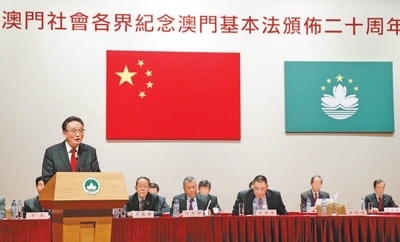 2013年2月21日,吳邦國同志在澳門文化中心出席澳門社會(huì)各界紀(jì)念澳門基本法頒布20周年啟動(dòng)大會(huì)并發(fā)表講話。新華社記者 鞠 鵬攝