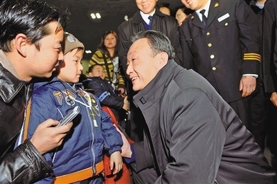 2008年2月3日,吳邦國同志在北京西站候車室與旅客交談。新華社記者 李 濤攝