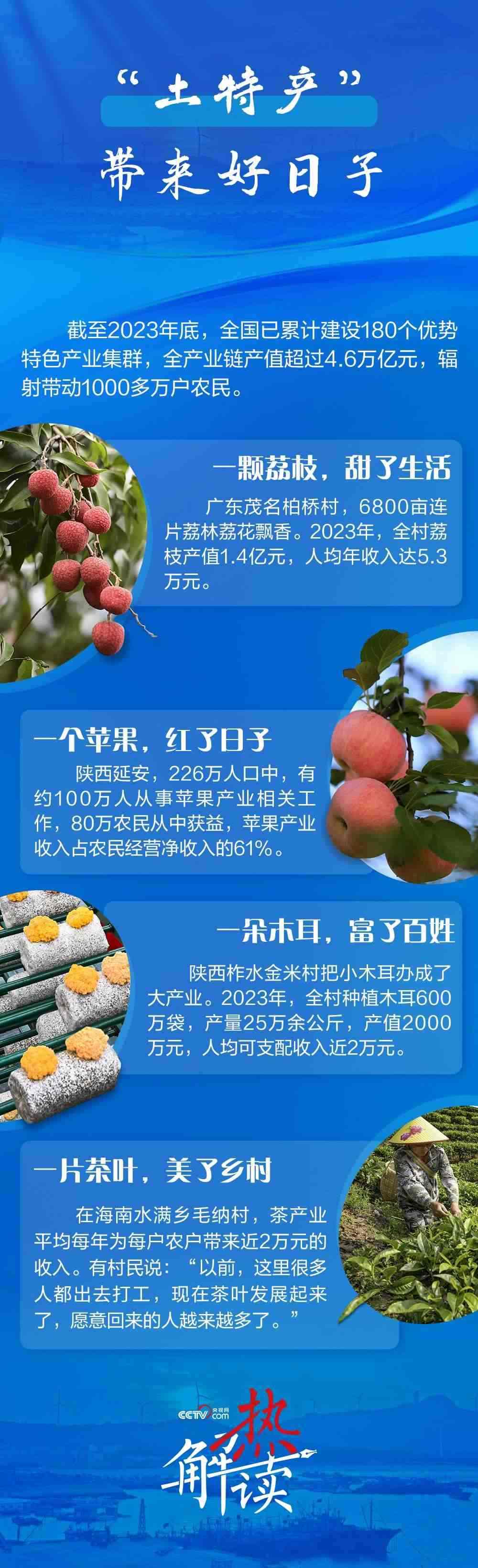 黨的二十屆三中全會通過的《中共中央關(guān)于進(jìn)一步全面深化改革、推進(jìn)中國式現(xiàn)代化的決定》提出,堅(jiān)持農(nóng)業(yè)農(nóng)村優(yōu)先發(fā)展,完善鄉(xiāng)村振興投入機(jī)制。2024年中央一號文件就“提升鄉(xiāng)村產(chǎn)業(yè)發(fā)展水平”進(jìn)行專章部署,鼓勵(lì)各地因地制宜大力發(fā)展特色產(chǎn)業(yè),支持打造鄉(xiāng)土特色品牌。