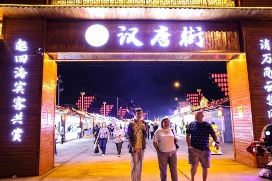 2023年6月27日,俄羅斯游客在琿春市漢唐街夜市逛街。新華社記者 顏麟蘊(yùn) 攝