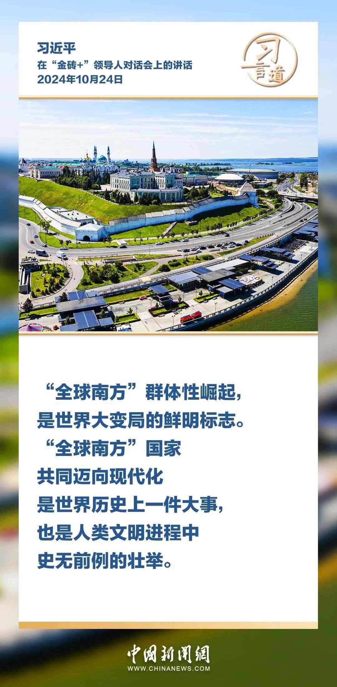當?shù)貢r間10月24日,國家主席習近平在喀山會展中心出席“金磚+”領導人對話會并發(fā)表重要講話。習近平指出——