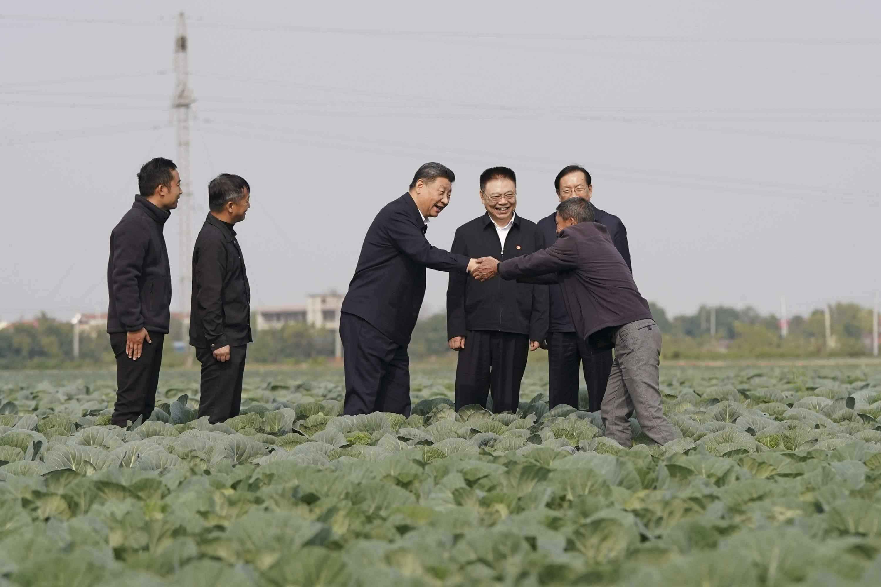 2024年11月5日,湖北省嘉魚縣潘家灣鎮(zhèn)。習(xí)近平總書記來到這里,了解推進(jìn)鄉(xiāng)村全面振興情況。秋意漸濃,蔬菜長廊一片郁郁蔥蔥,總書記微笑著同村民握手。又一張照片定格。