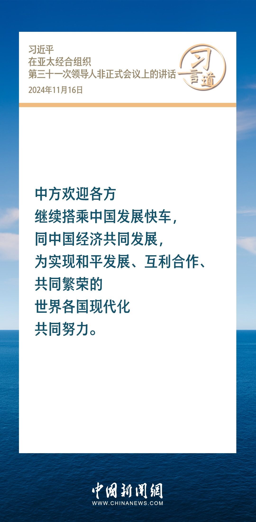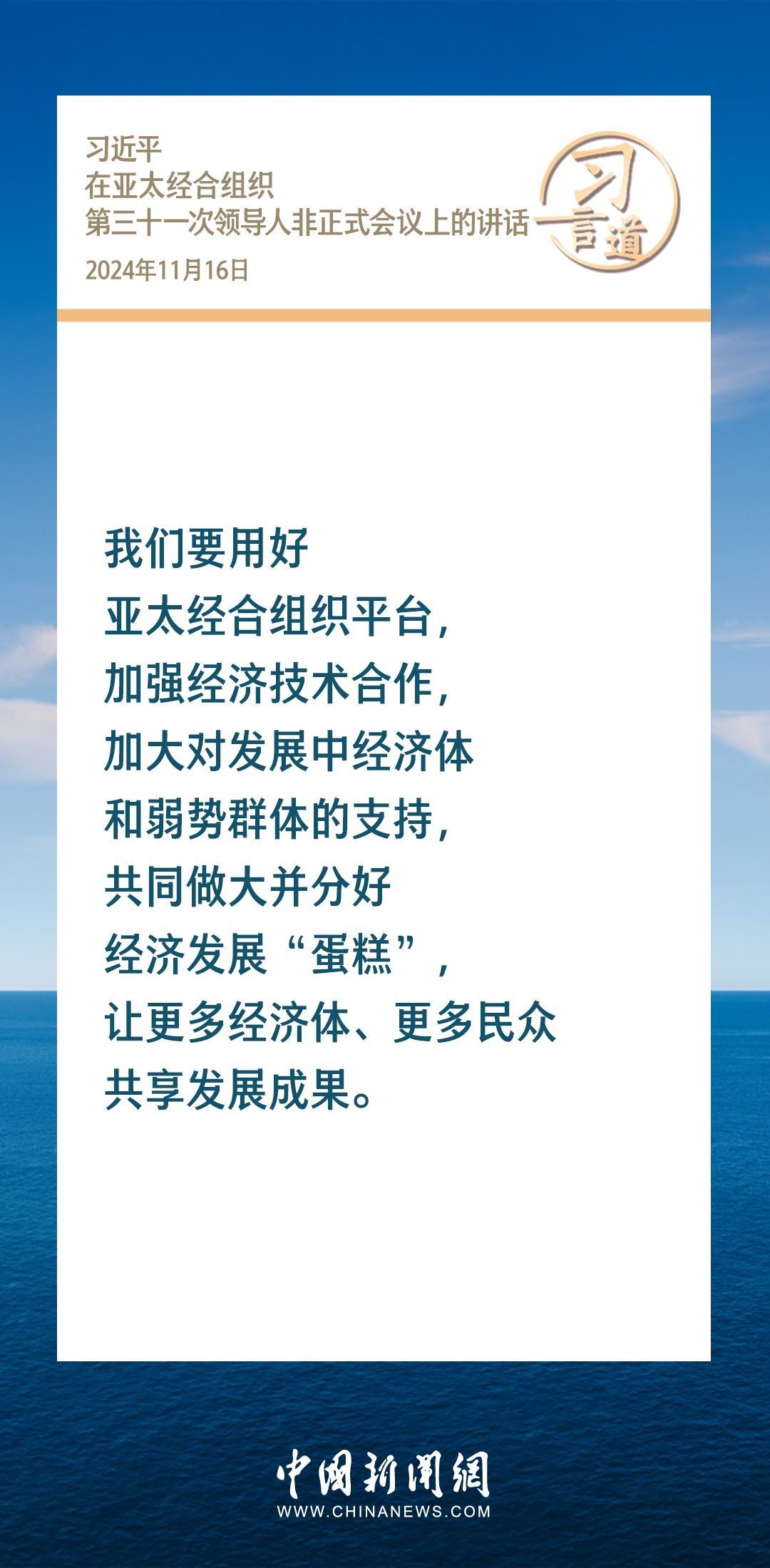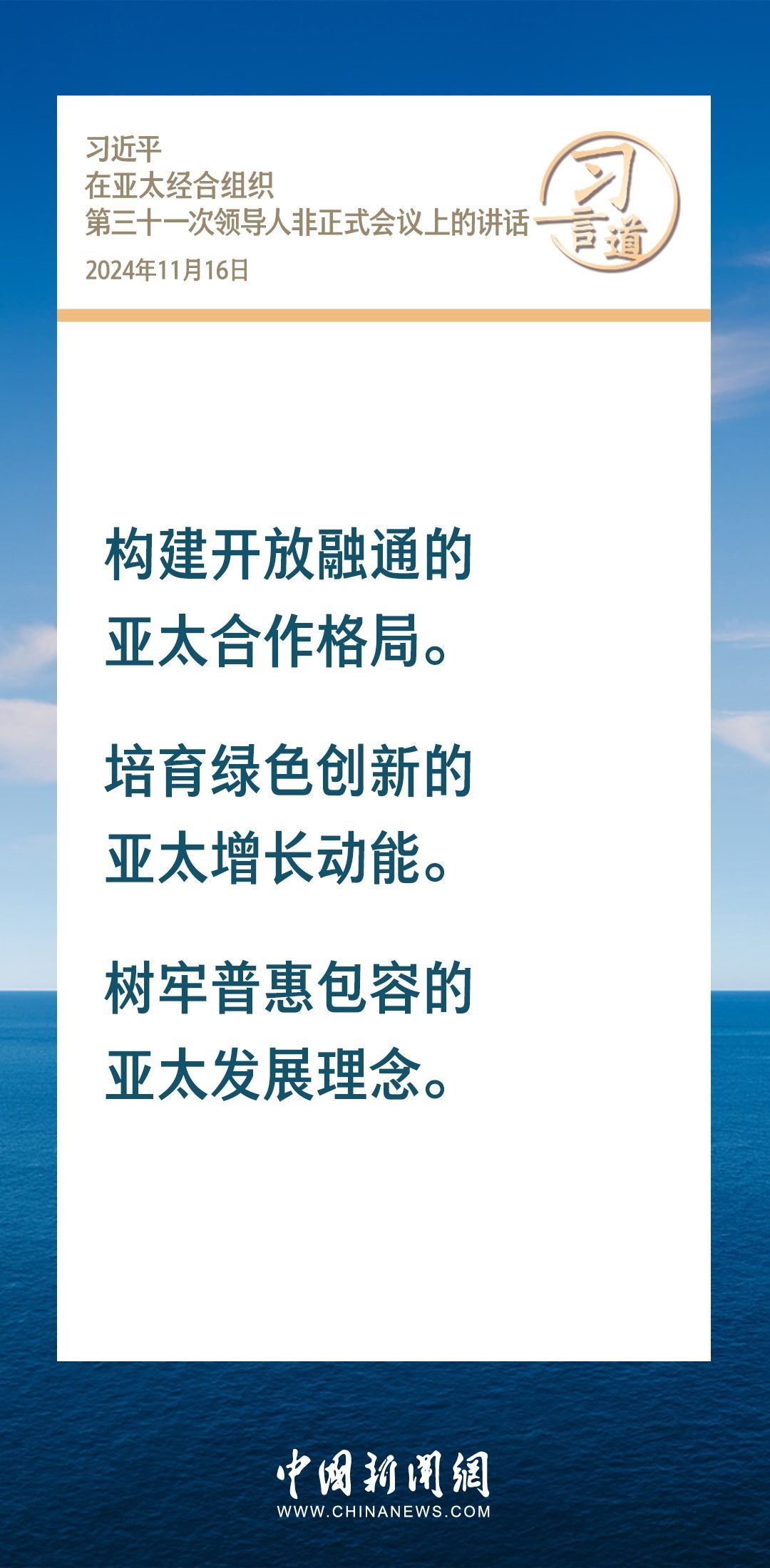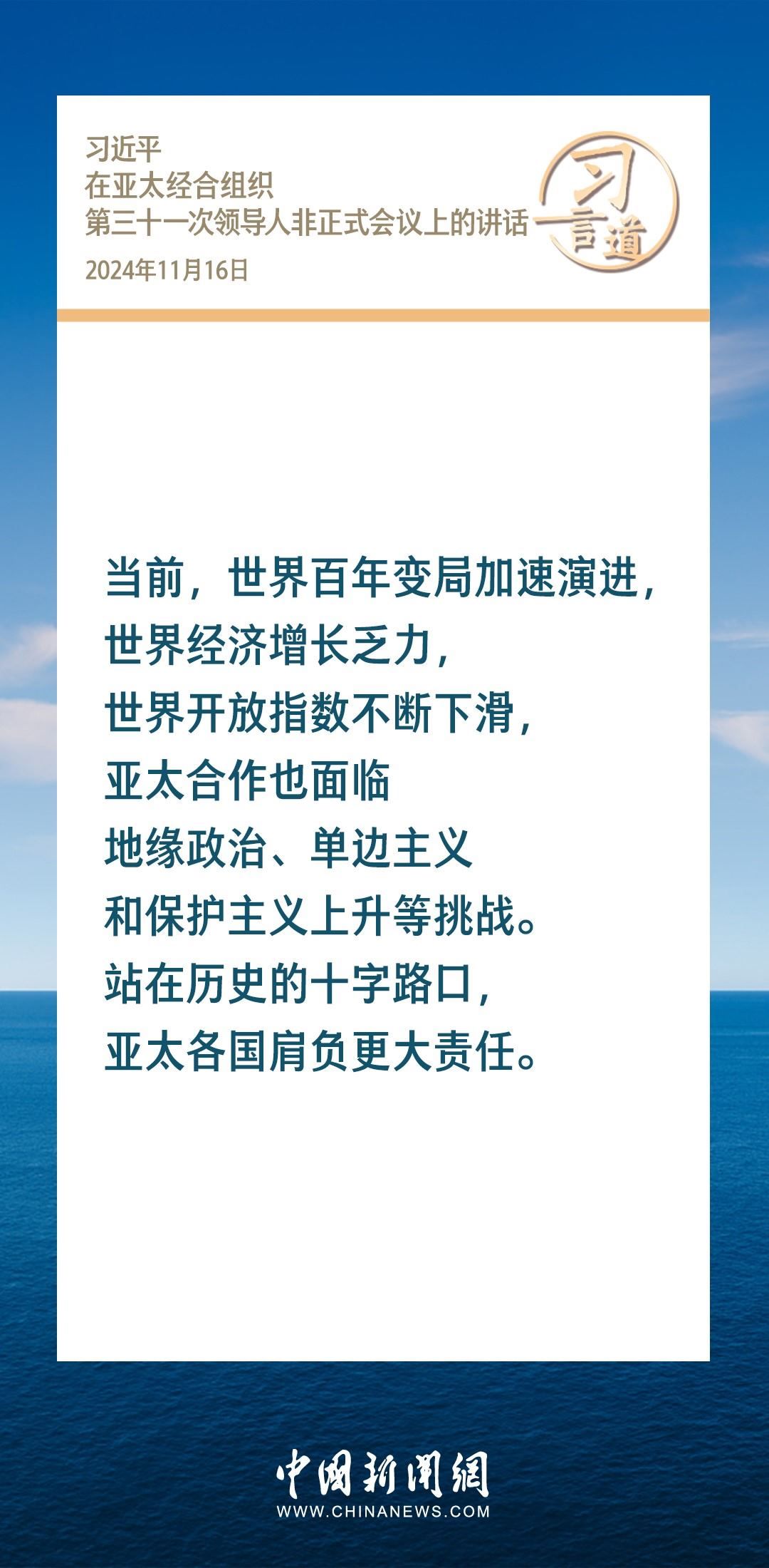 當(dāng)?shù)貢r(shí)間11月16日,國(guó)家主席習(xí)近平出席亞太經(jīng)合組織第三十一次領(lǐng)導(dǎo)人非正式會(huì)議并發(fā)表重要講話(huà)。習(xí)近平指出——