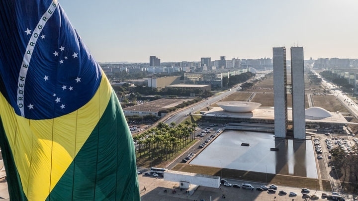 這是2024年7月16日在巴西首都巴西利亞拍攝的國(guó)會(huì)大廈(無(wú)人機(jī)照片)。新華社記者 王天聰 攝