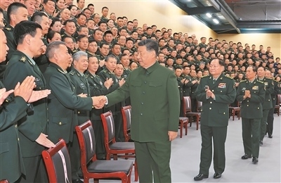 十二月四日,中共中央總書記、國家主席、中央軍委主席習(xí)近平視察信息支援部隊,代表黨中央和中央軍委,對信息支援部隊第一次黨代表大會的召開表示熱烈祝賀,向信息支援部隊全體官兵致以誠摯問候。這是習(xí)近平同代表們親切握手。新華社記者 李 剛攝