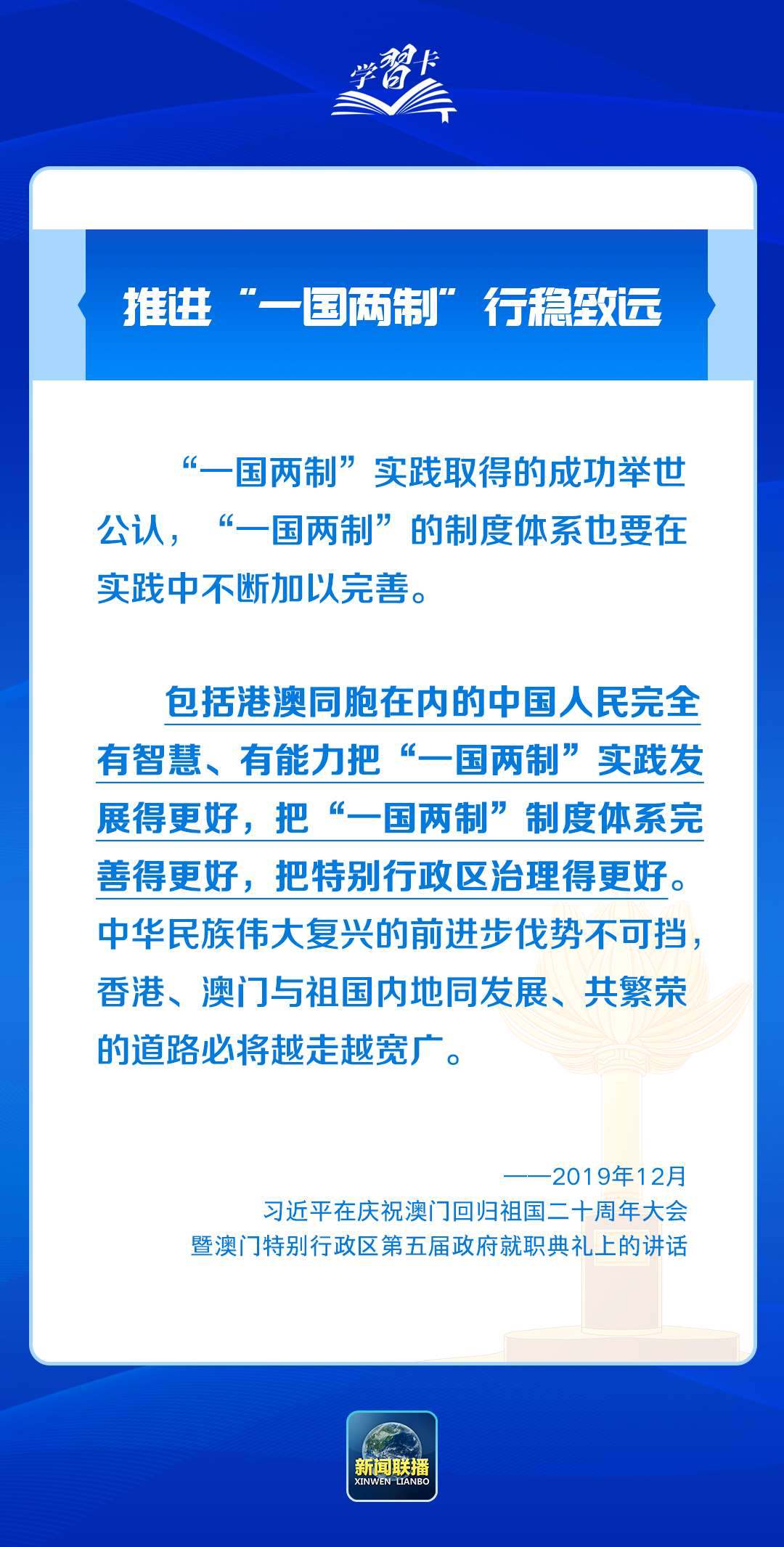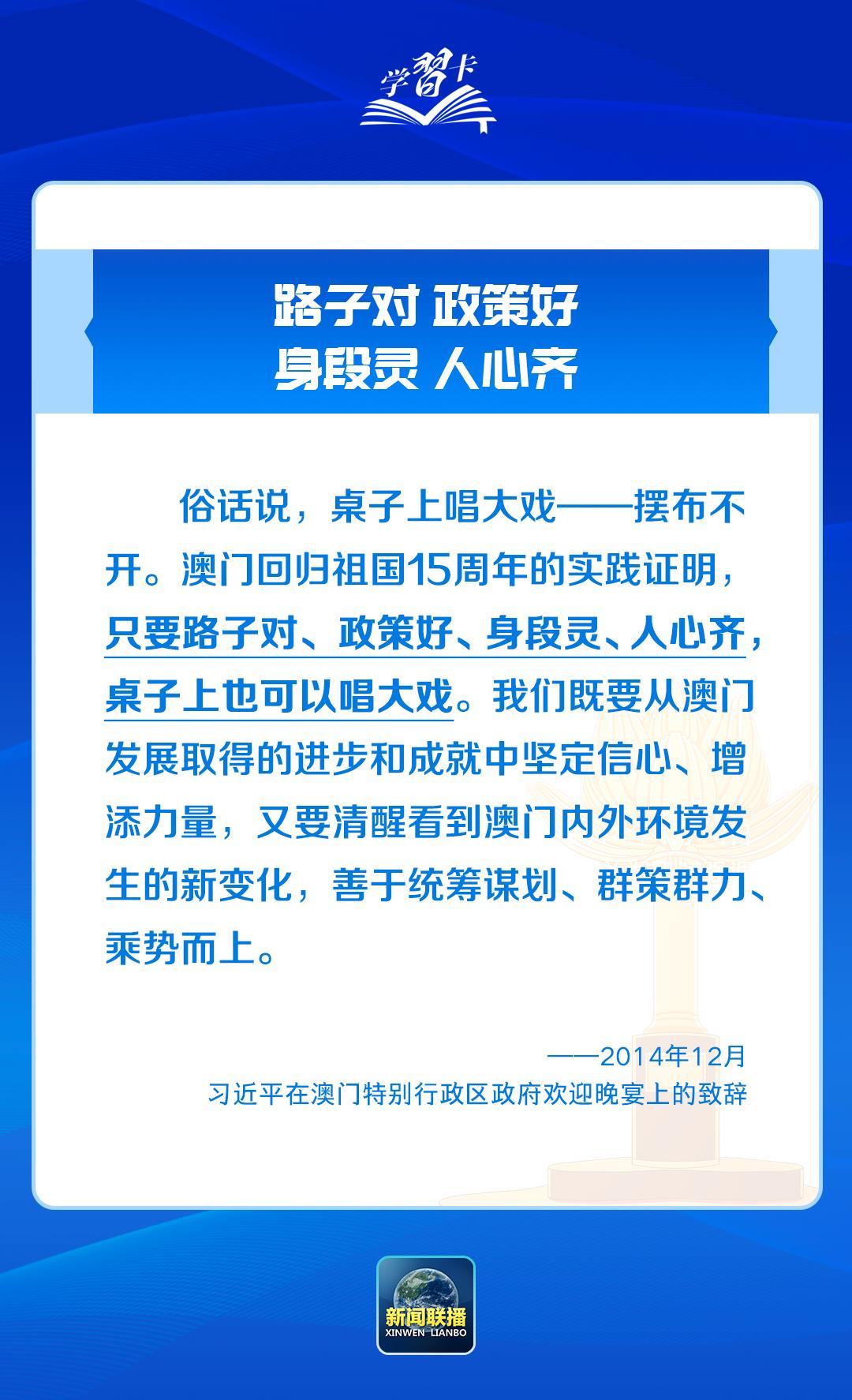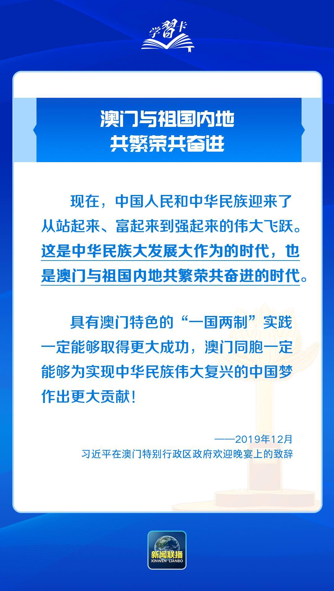 習(xí)近平主席一直心系澳門,為澳門全面準(zhǔn)確、堅(jiān)定不移貫徹“一國(guó)兩制”、保持長(zhǎng)期繁榮穩(wěn)定指明前進(jìn)方向。