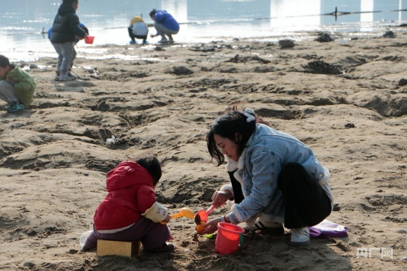 家長(zhǎng)帶孩子在興隆湖沙灘上玩耍(央廣網(wǎng)發(fā) 天府新區(qū)融媒中心供圖)