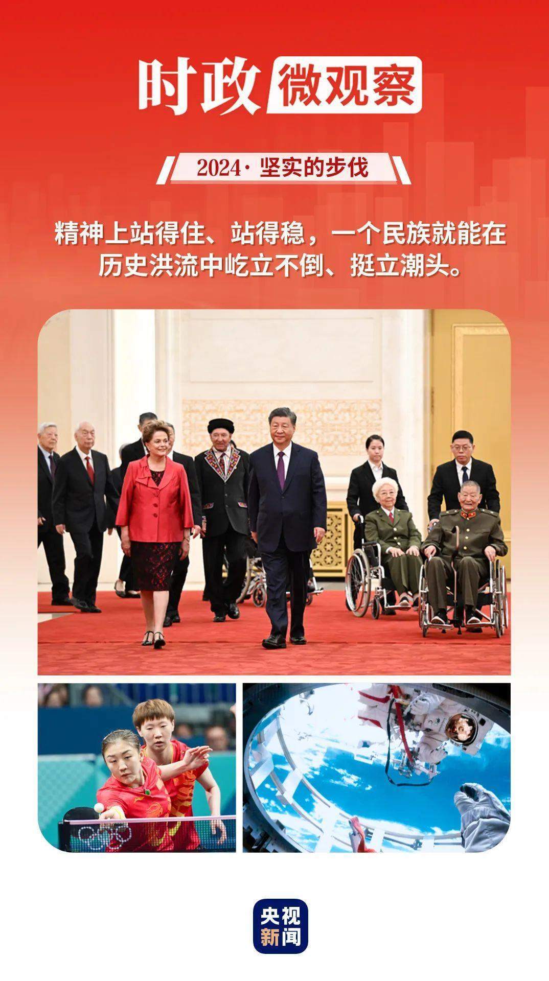 回望2024年,黨的二十屆三中全會(huì)標(biāo)記下改革開放進(jìn)程又一重要?dú)v史性時(shí)刻;我們熱烈慶祝中華人民共和國成立75周年 、澳門回歸祖國25周年,匯聚砥礪前行的強(qiáng)大力量;中國體育代表團(tuán)取得夏季奧運(yùn)會(huì)境外參賽最好成績(jī),生動(dòng)詮釋了新時(shí)代中國精神;太空遨游、智能迭代、長(zhǎng)橋飛渡、巨輪啟航,中國的創(chuàng)新動(dòng)力、發(fā)展活力勃發(fā)奔涌……中國人民更加自信自強(qiáng),奮斗精神更加昂揚(yáng)。