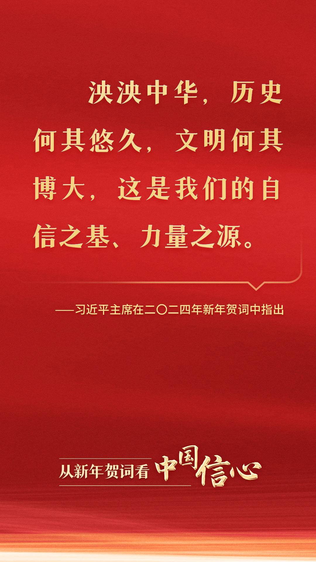 時隔10年,習(xí)近平主席在二〇二四年新年賀詞中深刻指出:“泱泱中華,歷史何其悠久,文明何其博大,這是我們的自信之基、力量之源。”