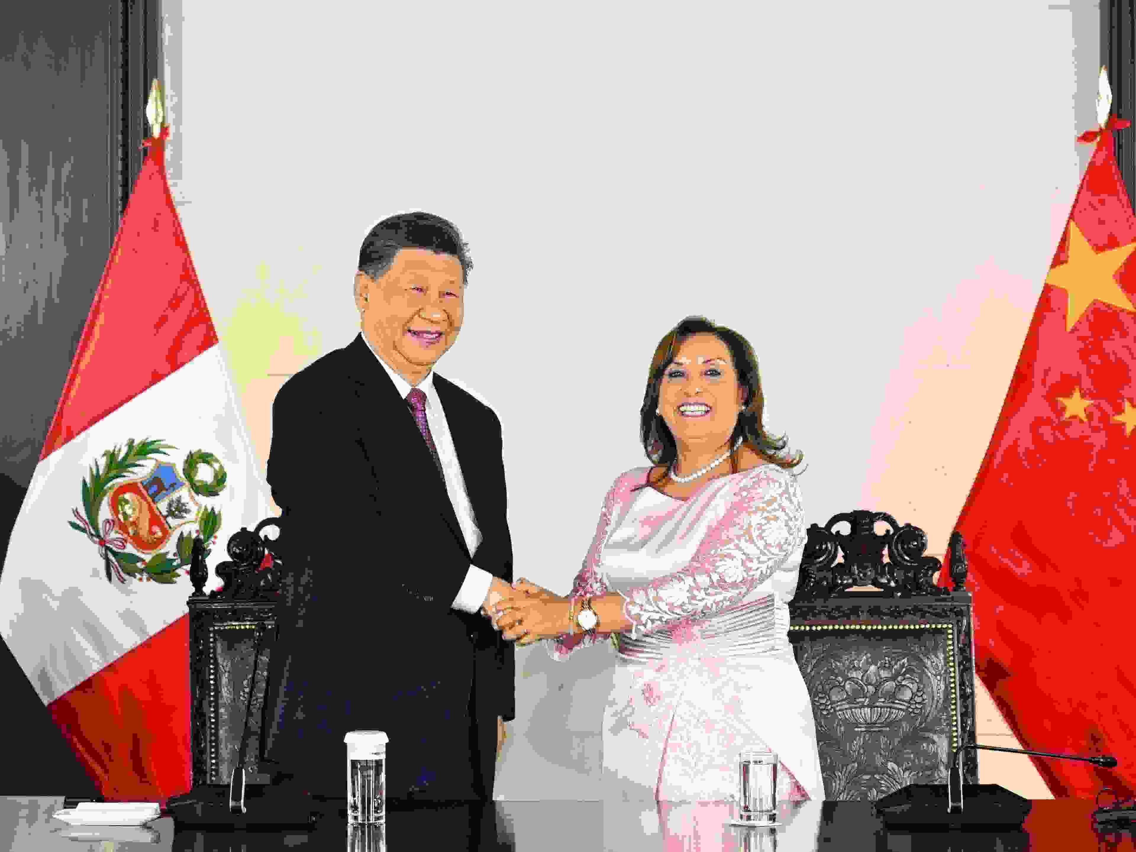 當(dāng)?shù)貢r(shí)間2024年11月14日晚,國(guó)家主席習(xí)近平同秘魯總統(tǒng)博魯阿爾特在利馬總統(tǒng)府以視頻方式共同出席錢凱港開港儀式。新華社記者 謝環(huán)馳 攝
