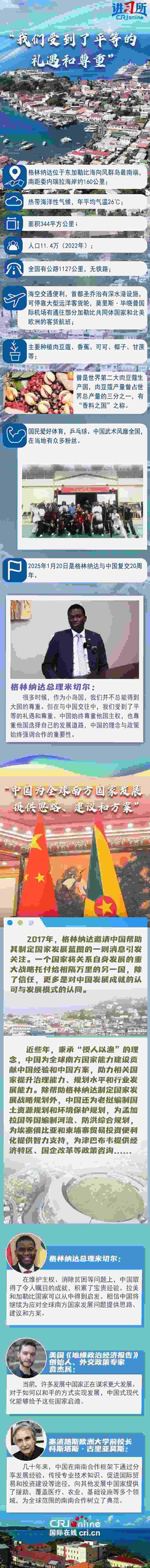 今年是格林納達(dá)與中國(guó)復(fù)交20周年。20年來(lái),中格關(guān)系穩(wěn)定發(fā)展,雙方相互尊重、平等相待,政治互信不斷鞏固,各領(lǐng)域務(wù)實(shí)合作成果豐碩……樹(shù)立了大小國(guó)家平等相待、守望相助、互利共贏的典范。