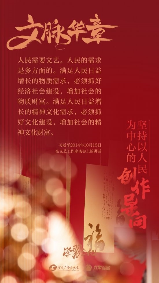 黨的十八大以來(lái),習(xí)近平總書記高度重視文藝工作,多次作出重要講話重要指示,對(duì)廣大文藝工作者寄予殷切期望,勉勵(lì)廣大文藝工作者堅(jiān)持以人民為中心的創(chuàng)作導(dǎo)向,把握時(shí)代脈搏,承擔(dān)時(shí)代使命,聆聽(tīng)時(shí)代聲音,勇于回答時(shí)代課題。