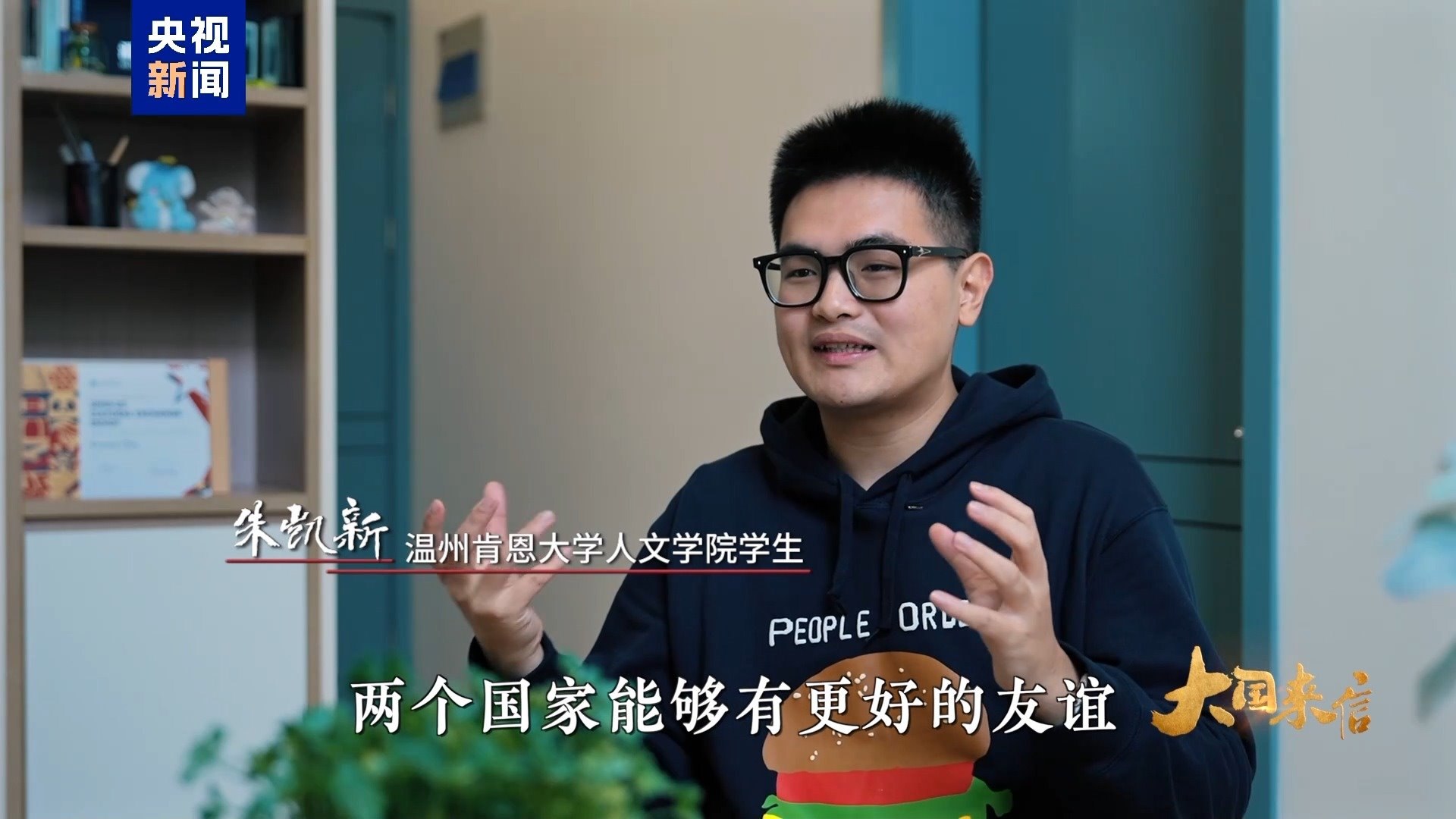 溫州肯恩大學(xué)人文學(xué)院學(xué)生 朱凱新:我也是非常非常期待每一位美國朋友來到我們中國,來到我們真正的這塊土地上去看看我們到底是什么樣子的。我希望能夠讓中國和美國兩個國家能夠有更好的友誼。