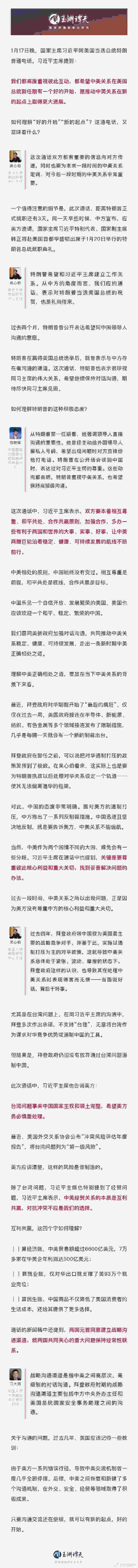 1月17日晚,中美元首通電話。一個值得注意的細(xì)節(jié)是,此次通話,距離特朗普正式就職還有3天。這通電話,意味著什么?來看譚主的獨家解讀。