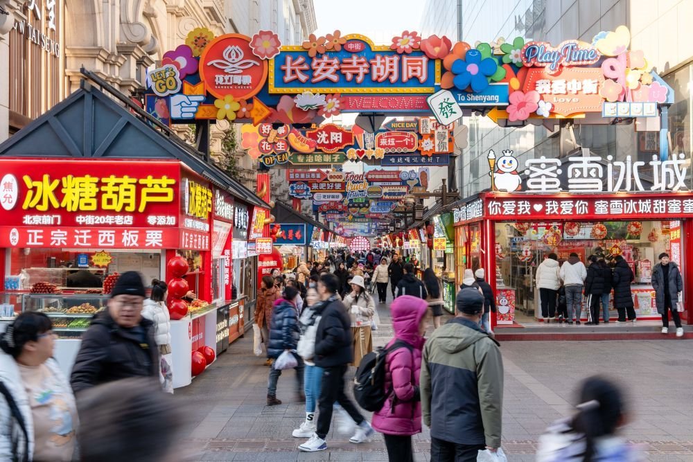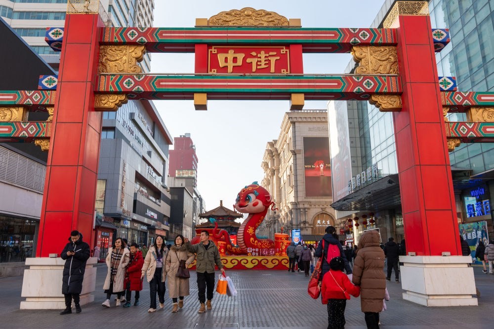 2025年1月22日,游客在沈陽中街逛街。