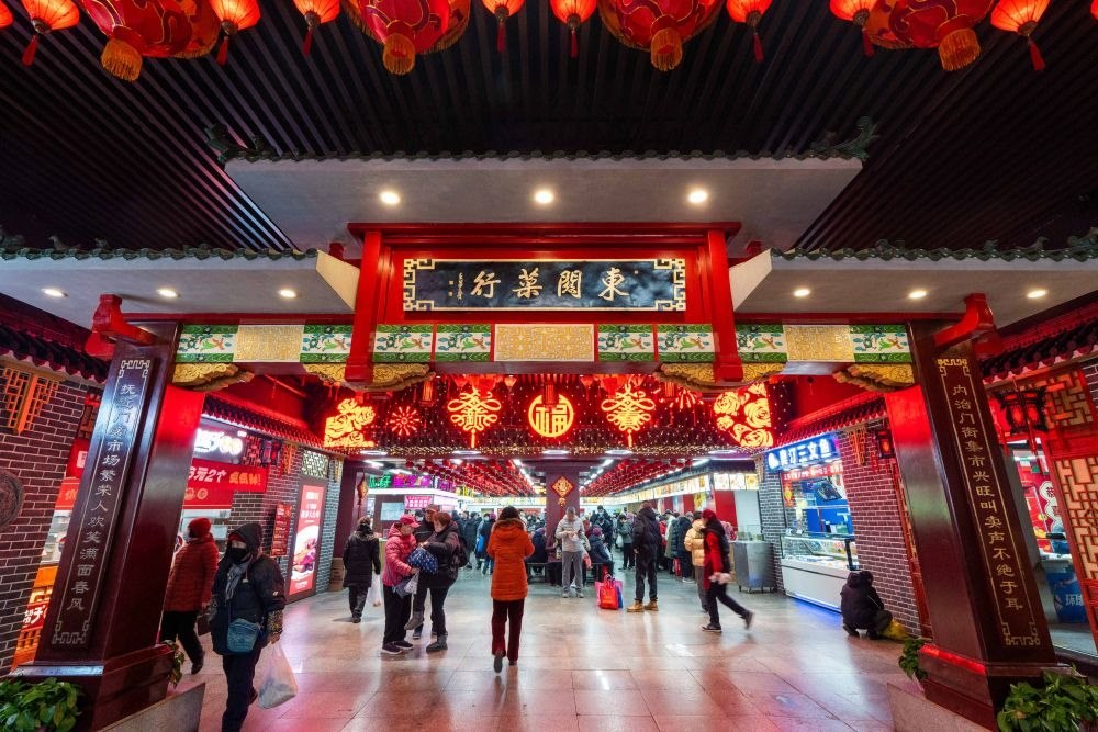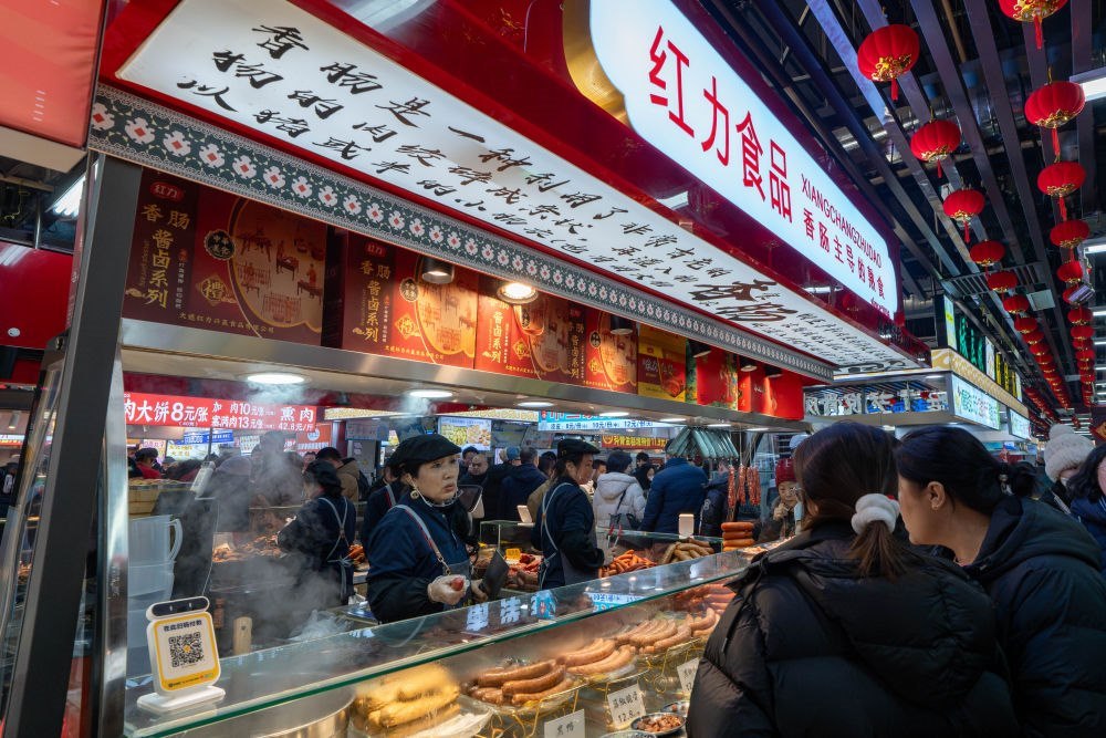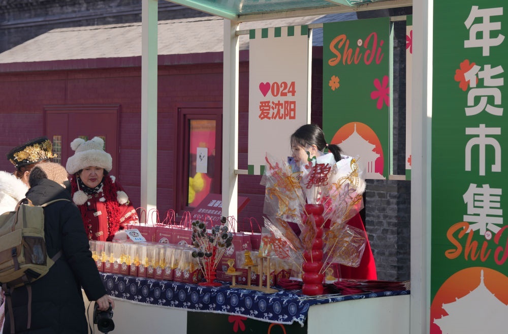 2025年1月22日,游客在沈陽故宮非遺年貨市集游覽消費。