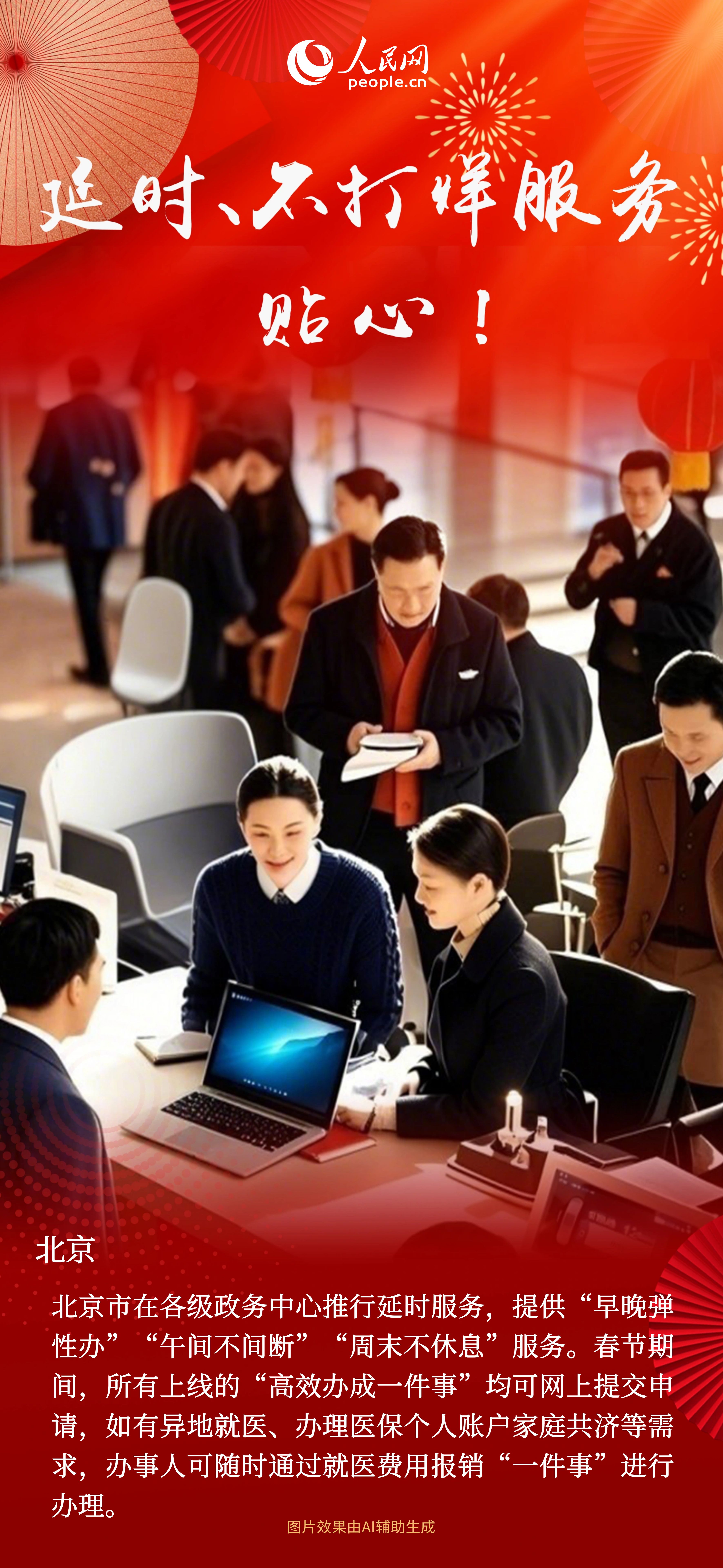 “一件接著一件辦”“這件辦完再下班”“幫辦代辦少操心”.......臨近春節(jié)假期,國家政務服務平臺上線了2025春節(jié)服務專區(qū),集合出行、文旅、民生、天氣等多項服務,各地也紛紛推出服務不打烊、節(jié)日辦事專場等一系列便民舉措。為企業(yè)群眾提供暖心、安心的政務服務,讓大家過節(jié)無憂、辦事不愁。