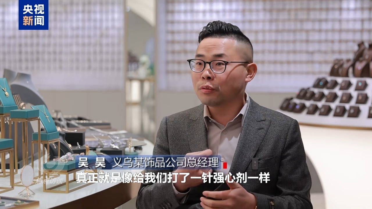 義烏某飾品公司總經(jīng)理 吳昊:總書記提出了國(guó)內(nèi)國(guó)際雙循環(huán)的事,對(duì)我們企業(yè)來(lái)說(shuō),真正就是像給我們打了一個(gè)強(qiáng)心劑一樣,就是堅(jiān)定了我們未來(lái)發(fā)展方向,企業(yè)就沒(méi)有那么迷茫了。