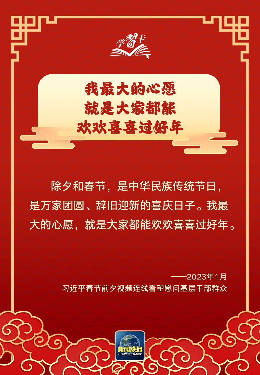習(xí)近平總書記曾說:“我最大的心愿,就是大家都能歡歡喜喜過好年。”在這辭舊迎新、萬家團(tuán)圓之際,讓我們聆聽總書記的暖心話語,一起學(xué)習(xí)↓