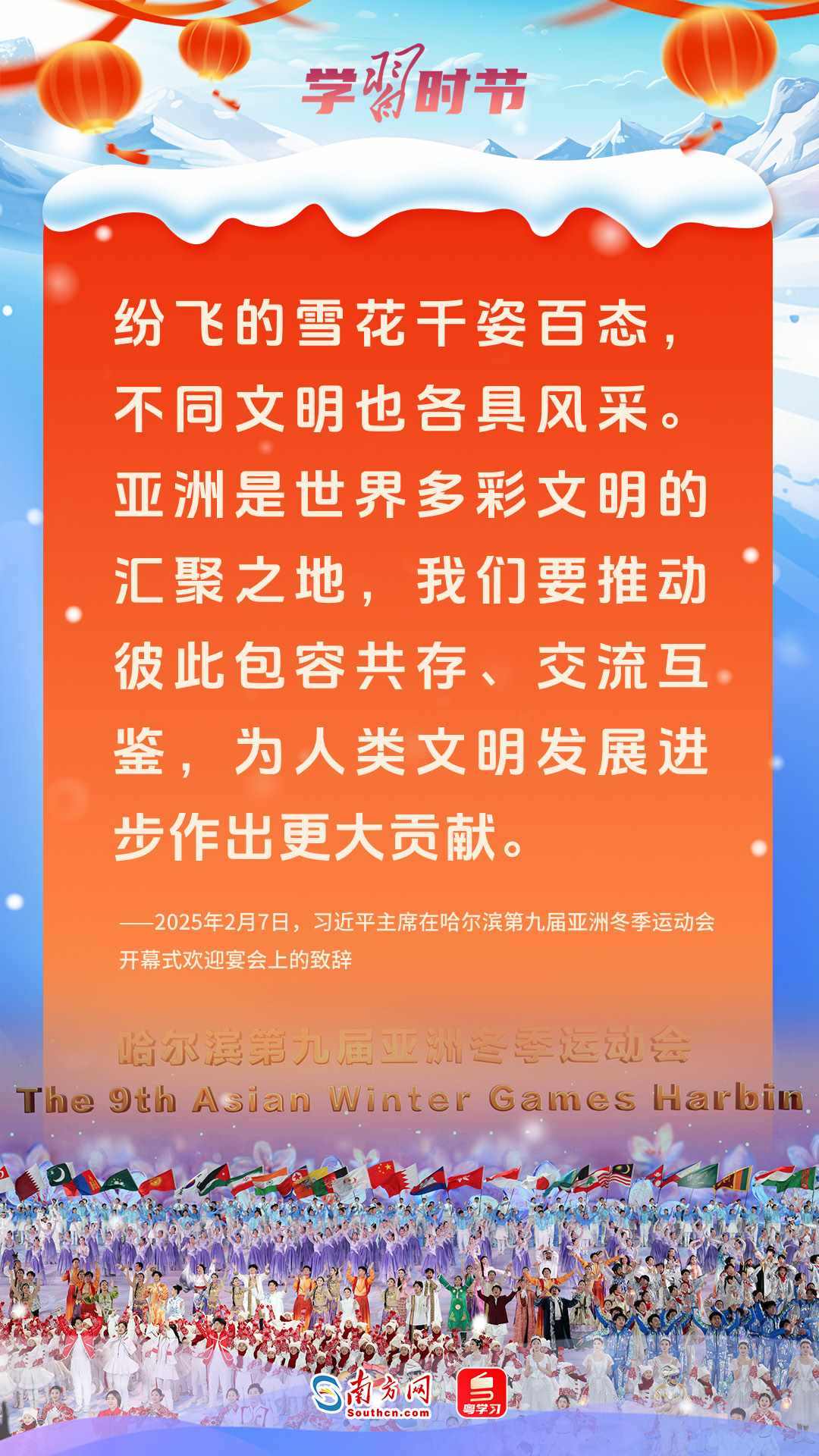 當(dāng)下,亞冬會(huì)正在如火如荼地舉行,多個(gè)項(xiàng)目的角逐進(jìn)入白熱化階段。本次體育盛會(huì)正值中國年,冰雪奇緣與東方文韻交織,奧林匹克精神與中華優(yōu)秀傳統(tǒng)文化同頻共振,共同傳遞著對(duì)和平、發(fā)展、友誼的愿望和追求。