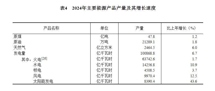 初步核算,全年一次能源生產(chǎn)總量[25]49.8億噸標(biāo)準(zhǔn)煤,比上年增長4.6%。