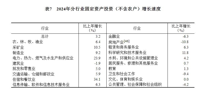 [41]由于投資統(tǒng)計制度方法改革、第五次全國經(jīng)濟(jì)普查數(shù)據(jù)修訂、統(tǒng)計執(zhí)法檢查等因素,2024年固定資產(chǎn)投資相關(guān)指標(biāo)增速按可比口徑計算。