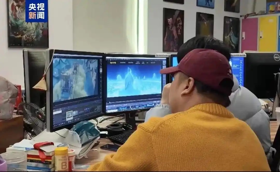 △《哪吒2》壯觀的特效背后,是全國(guó)138家動(dòng)畫公司的合力托舉。圖為創(chuàng)作團(tuán)隊(duì)正在確認(rèn)畫面效果。