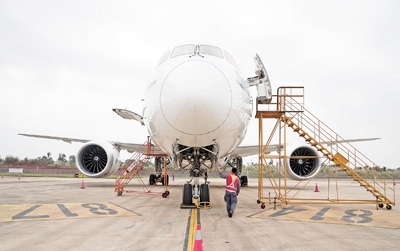 “面前這個(gè)大家伙,是來自蒙古航空的波音B787—9飛機(jī),1月中旬飛到海南自貿(mào)港一站式飛機(jī)維修產(chǎn)業(yè)基地接受專項(xiàng)維修服務(wù)。我們要加緊做好發(fā)動(dòng)機(jī)換發(fā)、專項(xiàng)維修服務(wù)和飛機(jī)封存等工作?!睏顦s川介紹。