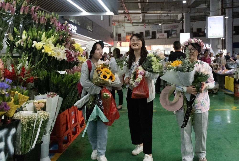 2024年11月25日,消費(fèi)者在云南省昆明市斗南花卉市場(chǎng)內(nèi)選購花卉。