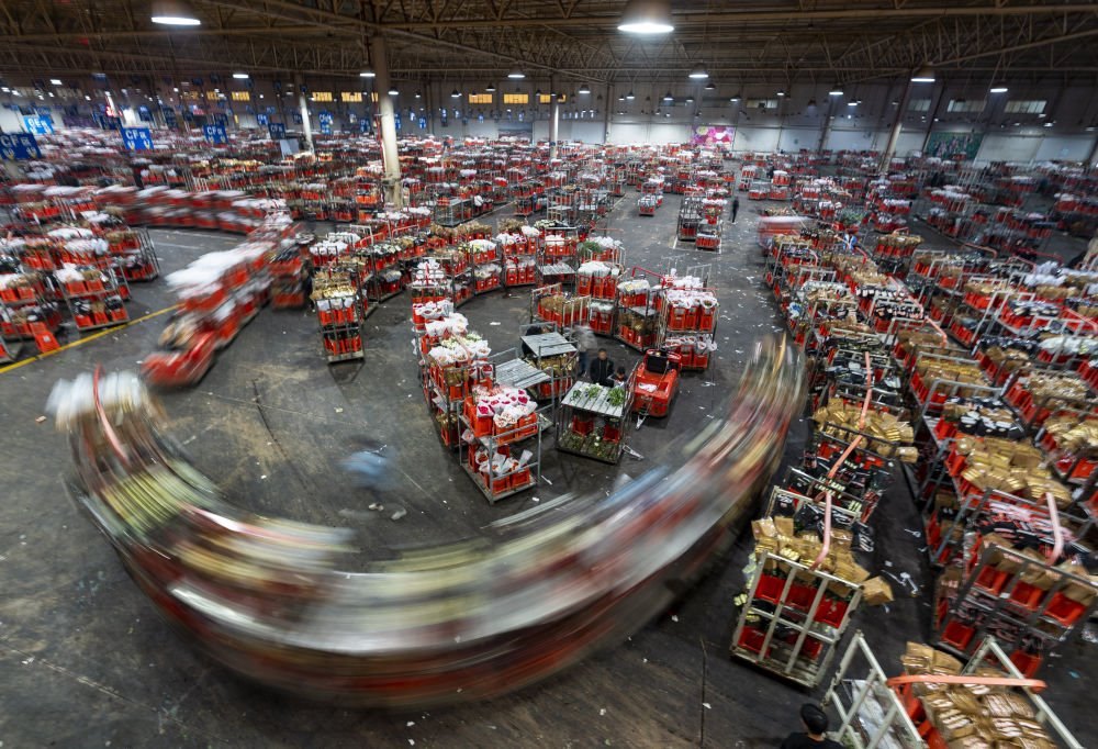 2023年1月31日,臺(tái)車在昆明國際花卉拍賣交易中心運(yùn)輸鮮花。