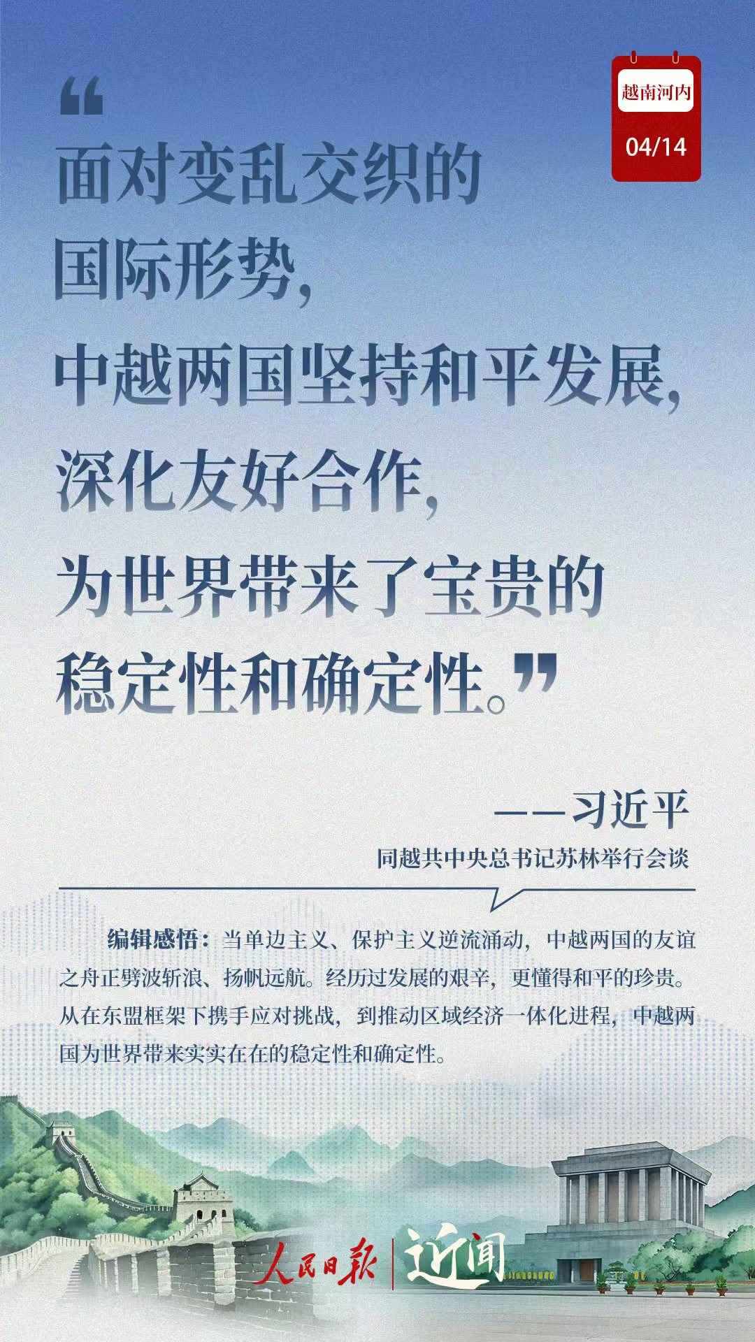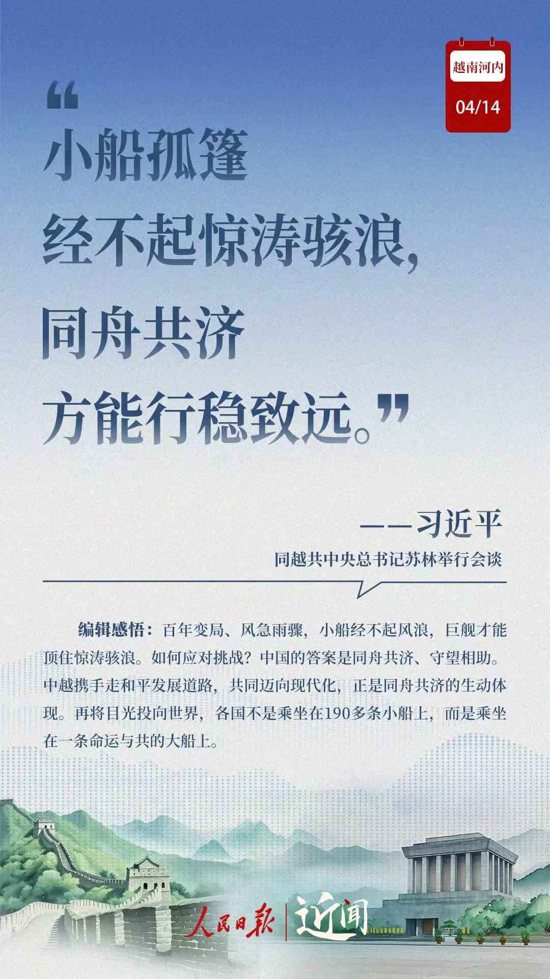 “小船孤篷經(jīng)不起驚濤駭浪,同舟共濟方能行穩(wěn)致遠(yuǎn)”“中越關(guān)系根基在人民、血脈在人民、力量在人民”……透過這些話,一覽此次越南之行。