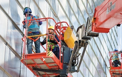 河北省石家莊美術(shù)館建設現(xiàn)場,工人們在加緊施工作業(yè)。