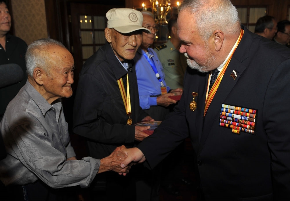 現(xiàn)年65歲的尼古拉,從小在外祖父那里聽到很多關(guān)于中國的故事。多年來,他一直致力于俄中友好事業(yè),現(xiàn)任俄中友協(xié)副主席。在他心中,有一枚勛章意義重大。2015年5月,習(xí)近平主席訪問俄羅斯期間,會見了俄羅斯老戰(zhàn)士代表,并頒發(fā)了紀(jì)念獎?wù)?。尼古拉也在其中?/p>