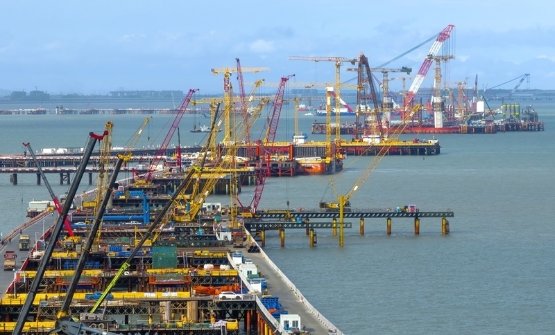 這是廈金大橋(廈門段)海上橋梁大規(guī)模裝配化施工現(xiàn)場(6月13日攝)。