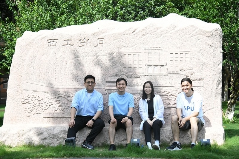 2024年6月26日,西工大哈薩克斯坦分校學(xué)生道托夫·鐵木爾、博雷斯別克·穆拉特、伊薩耶娃·豪哈爾和圖列加利·阿米爾(從左至右)在位于陜西西安的西北工業(yè)大學(xué)本部校園內(nèi)合影。新華社記者 張博文 攝