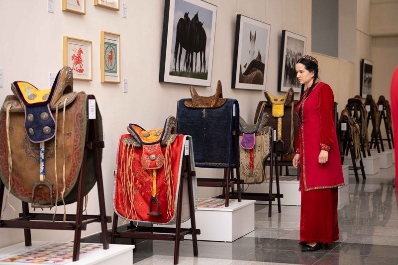 2025年6月3日,一名女子在土庫曼斯坦首都阿什哈巴德參觀“騏驥馳騁——2025中國馬文化展”。新華社發(fā)