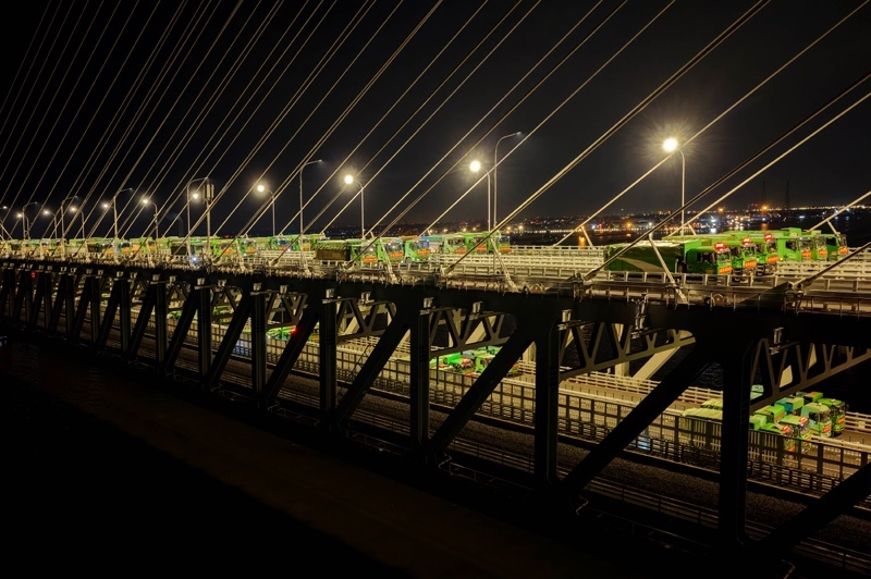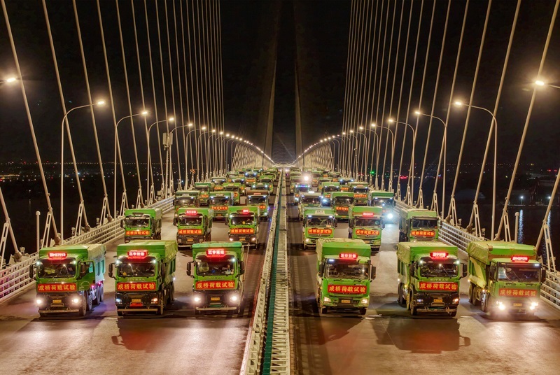 6月20日晚,常泰長江大橋主航道橋進(jìn)行4400噸荷載試驗,110輛重型卡車駛上主航道橋面,啟動靜態(tài)荷載試驗。自6月16日起,常泰長江大橋開啟為期一周的荷載試驗,對大橋承載力和安全性進(jìn)行全面評估。