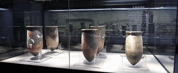 “這是一件出土于安徽蒙城新石器時代尉遲寺遺址的大口陶尊,距今大約4800年?!敝v解員指著一件陶器展品,“它的特別之處是器物上有著刻畫符號,分別是‘日’‘月’‘山’形。抽象的表達和組合,已經(jīng)超越了簡單的圖畫,使我們看到了漢字的雛形。”
