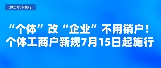 市場監(jiān)管總局近日發(fā)布《個(gè)體工商戶登記管理規(guī)定》,規(guī)定于7月15日起正式施行。規(guī)定明確個(gè)體工商戶可以通過變更登記方式轉(zhuǎn)型為企業(yè),保留統(tǒng)一社會信用代碼、成立時(shí)間、名稱字號和相關(guān)行政許可。規(guī)定完善了登記規(guī)則,個(gè)體工商戶經(jīng)營場所發(fā)生變化時(shí),可以像企業(yè)一樣辦理跨區(qū)域遷移。規(guī)定還明確了個(gè)體工商戶經(jīng)營權(quán)繼承的相關(guān)要求,為老字號“換人不換招牌”提供制度保障。