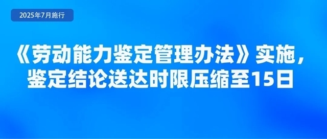 人力資源社會保障部、國家衛(wèi)生健康委聯(lián)合印發(fā)的《勞動能力鑒定管理辦法》,自2025年7月1日起施行?!掇k法》明確,工傷職工和因病或非因工致殘申請領(lǐng)取病殘津貼人員申請勞動能力鑒定適用本辦法。勞動能力鑒定分為初次鑒定和再次鑒定,對初次鑒定不服可以申請?jiān)俅舞b定,再次鑒定為最終結(jié)論?!掇k法》強(qiáng)調(diào),要加強(qiáng)便民服務(wù),減少不必要材料,信息共享能夠獲取的申請材料不得要求申請人重復(fù)提交;壓縮鑒定時(shí)限,將結(jié)論送達(dá)時(shí)限從20日壓縮至15日;加強(qiáng)無障礙環(huán)境建設(shè),完善無障礙服務(wù)設(shè)施設(shè)備。