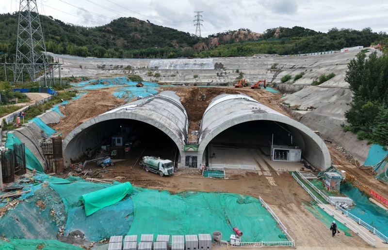 這是9月22日在青島市李滄區(qū)拍攝的建設(shè)中的唐山路隧道。