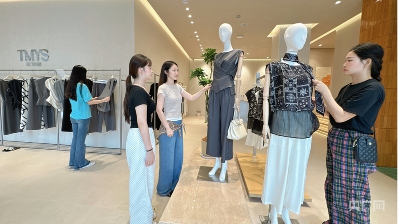 市民在“天門衣尚”品牌館內(nèi)挑選衣服(央廣網(wǎng)發(fā) 天門市委宣傳部供圖)